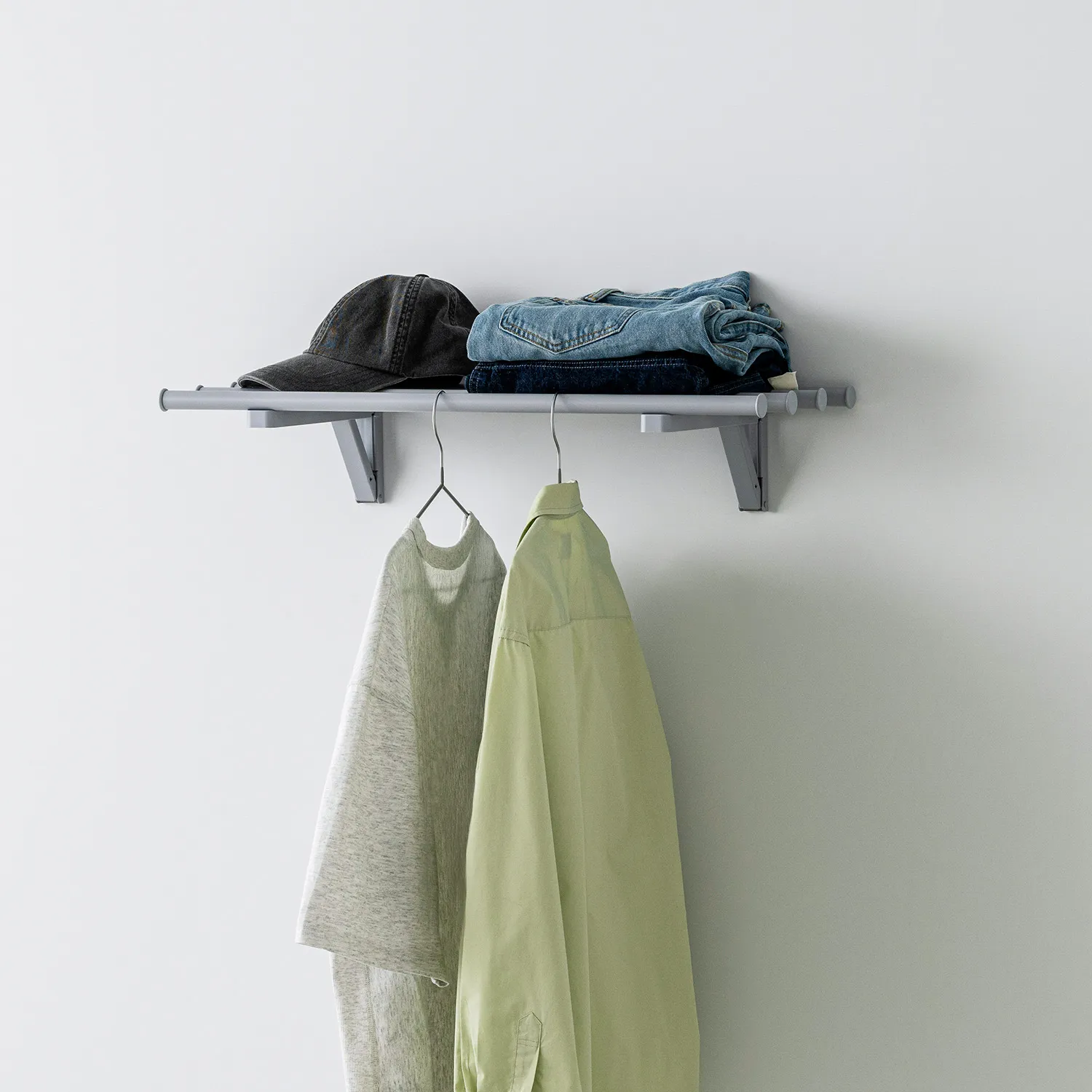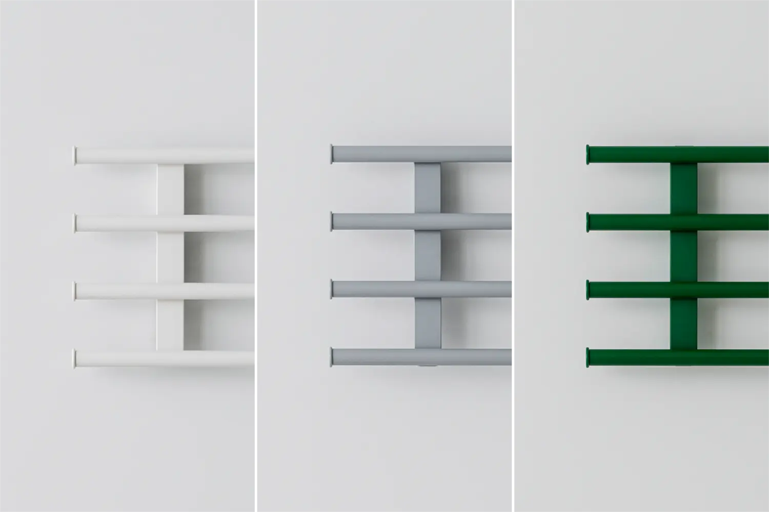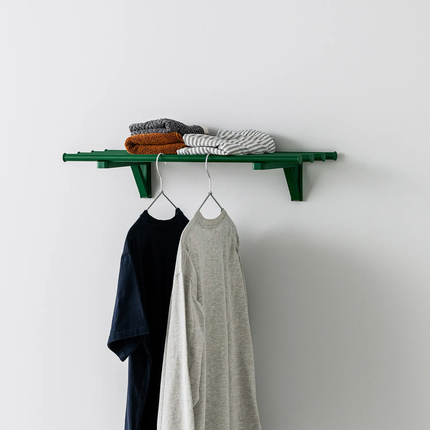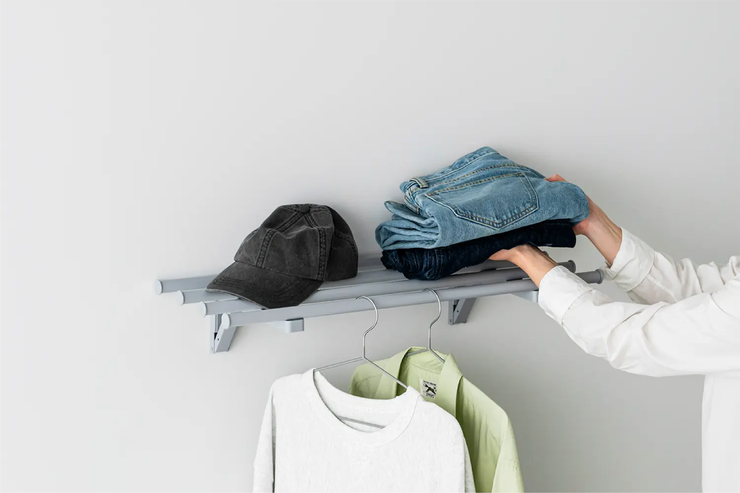 空間に馴染むホワイト、衣類が引き立つグレー、アクセントになるグリーンの3色を用意しました。