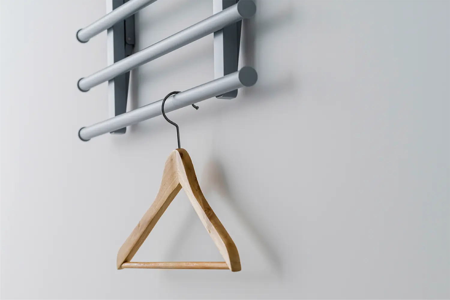 収納時もハンガーが壁面に触れにくい構造のため、壁を傷つける心配がありません。