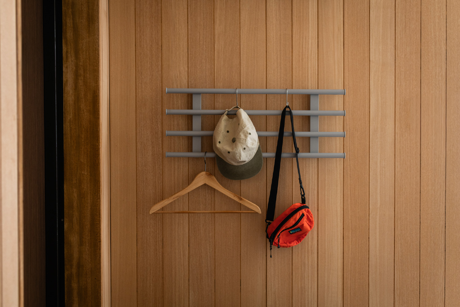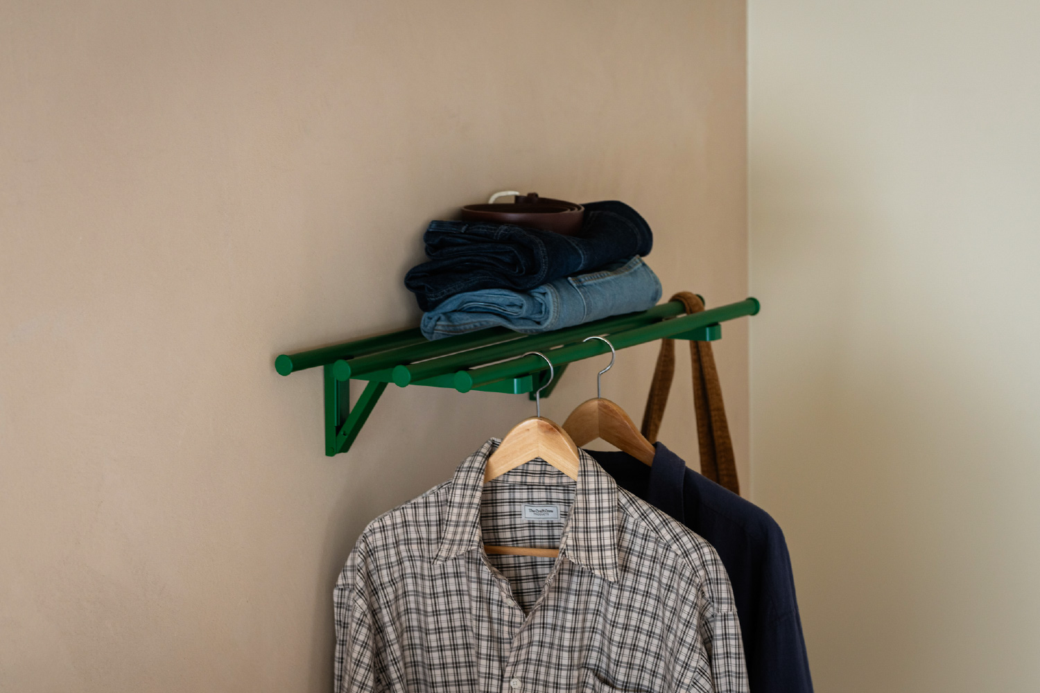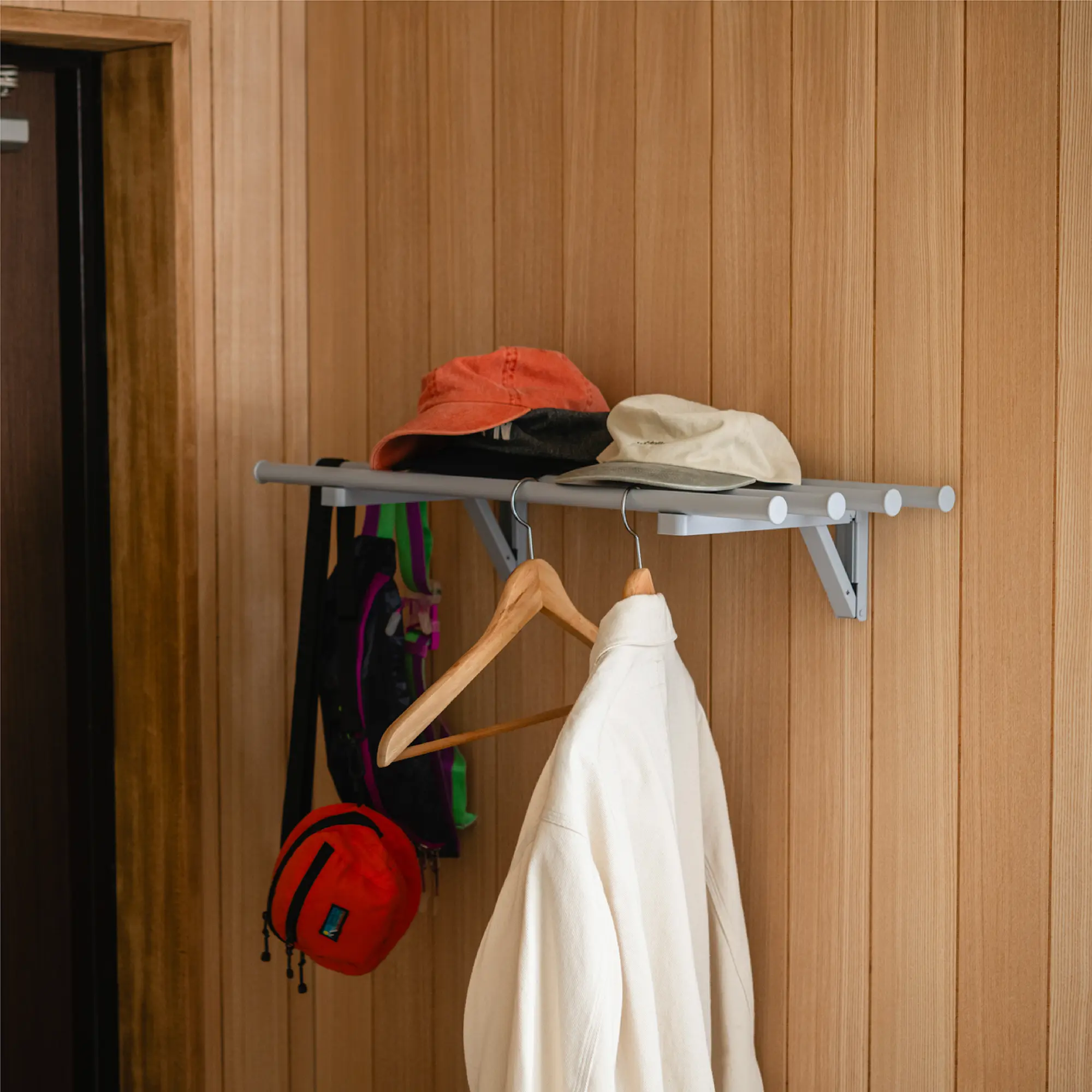 折りたたみ式で、「吊るす」と「乗せる」を可能にするウォールバー。